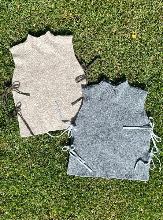 Knitted wool tie vest oat